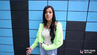 Cette jeunette latine va montrer ses seins en extérieur et faire une pipe dans la voiture, elle va ensuite suivre le lascar pour se faire tringler.