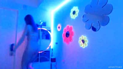 La sublime actrice au cheveu bleu, et au corps magnifique, Jewelz Blu, baise solo avec un sex-toy et un vibromasseur durant cette vidéo.
