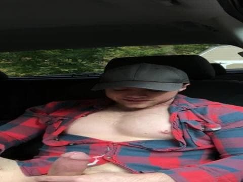 Le type musclé a garé sa bagnole dans un coin tranquille. Il se branle devant sa webcam et finit par remplir sa chemise de foutre
