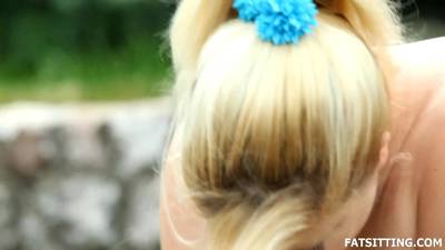 Grosse blonde se fait lécher et suce en extérieur dans le jardin