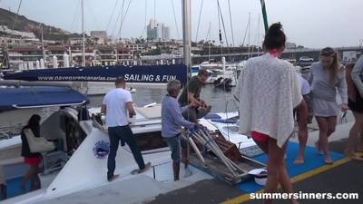 Ce groupe d'amis vont aller sur le bateau en mer pour faire une petite partouze avec le couché du soleil, ils vont bien s'amuser et partager le sperme
