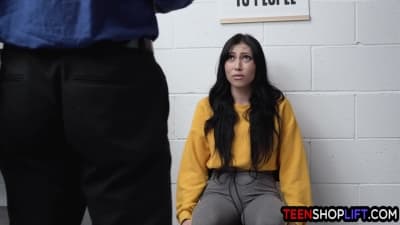 Jeune brunette baise avec le mec qui veut l'envoyer en taule