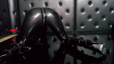 Danni Levy retire sa tenue en latex et se caresse ses gros seins