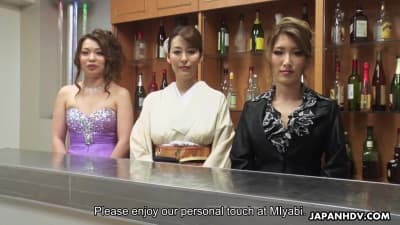 Les trois bombes vont savoir faire plaisir au mec, elles vont le sucer et grimper sur sa bite, le bonhomme est au paradis !