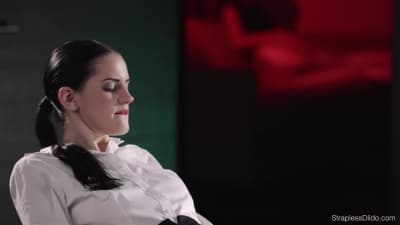 La secrétaire se doigte sous son collant. Elle appelle son assistante, car sa faim de chatte est terrible, voulant la lécher et pénétrer avec un strapon