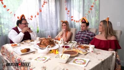 C'est une fête un peu particulière pour cette famille ! Thanksgiving se fête à coup de bite dans la chatte au lieu de partager un repas en famille