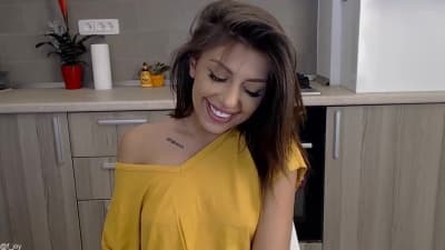 La jeune fille s'installe dans sa cuisine, elle écarte ses cuisses et se masturbe avec deux vibrateurs, elle aime sentir les vibrations dans sa chatte