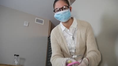 Imaginez que vous êtes dans un hôpital quand la doctoresse sexy vient dans votre chambre et commence à sucer votre bite et à la chevaucher.