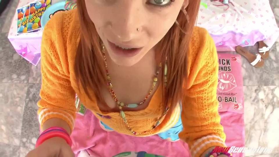 Cette rousse au visage magnifique va bien pomper avant de s'enfiler la grosse queue, elle va bien la sentir passer dans sa petite chatte.