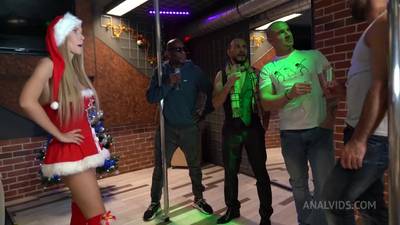 La mère Noël va s’occuper de quatre chanceux et tester la bite de chacun dans son joli cul avant de recevoir généreusement la semence.