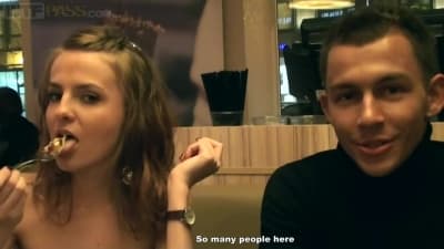 Jeune salope de compét voici Martha A Tanika qui après s'être fait draguée dans la rue par 2 mecs fini aux wc pour se faire enculer et gicler sur le visage