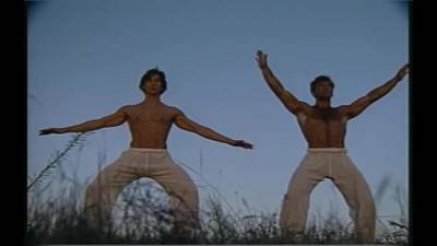 Le corps nu de DaVinci fait des étirements à l'extérieur pour que vous puissiez tous en profiter. Ce mec exhibe son corps parfait.