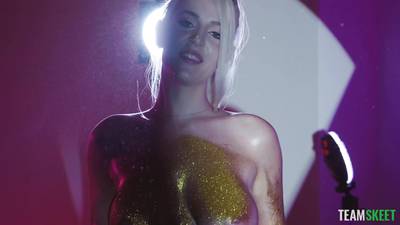 Elle est blonde tatouée avec des gros seins, elle n'attend qu'une chose : se mouiller de plaisir ! Une grosse salope avec des piercongs au sein