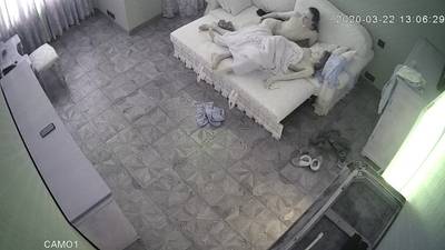 Ce jeune couple est tellement excité, ils oublient la caméra cachée et bise sauvagement sur le canapé.