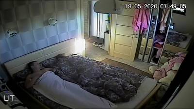 Sans le savoir, ce couple baise tranquillement dans leur lit sans savoir qu'une caméra de surveillance a été installée dans leur chambre.