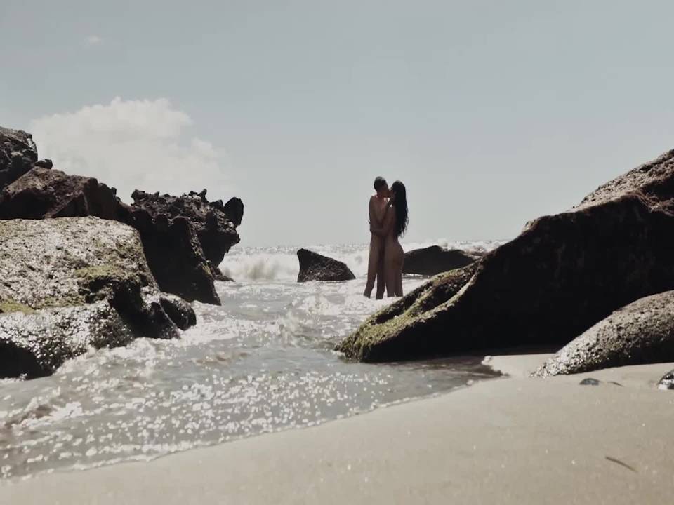 Nue, main dans la main, il se promène et s'embrasse sur une plage. Que c'est romantique. Je vous rassure, ils vont bien se chauffer avant de faire l'amour.