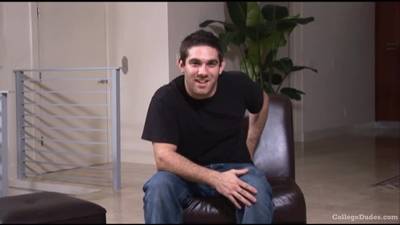 Le beau brun se déshabille et montre son beau corps musclé, il prend sa bite en main et la masturbe, il s'éjacule dessus