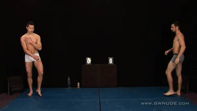 Les deux gay s'étirent avant de commencer à luter l'un contre l'autre, leurs corps s'enlace et ils finissent par se huiler