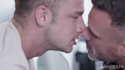 Damon fait du chantage à son patron, il le provoque et lui lèche la bouche, ils font de l'anal dans le bureau, Manuel lèche son propre sperme