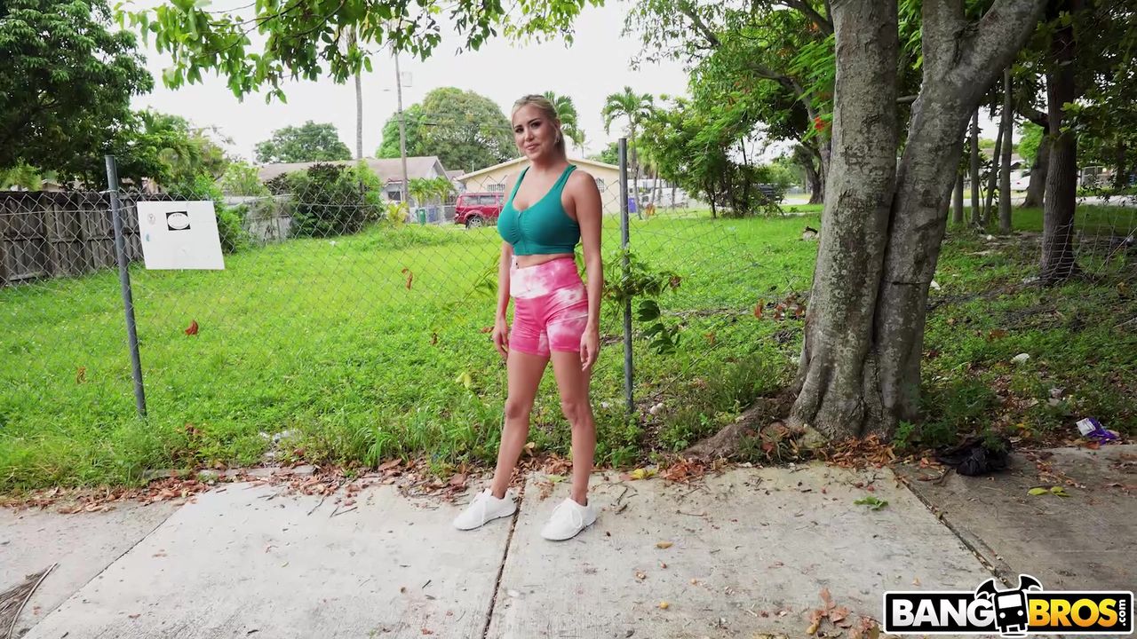 Une joggeuse sexy est interpelée dans la rue par 2 gars pour une baise en voiture. Pas farouche, elle accepte de déguster une bonne bite pendant la balade.