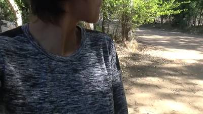 Victoria est une grande fan d'exhibition, elle montre ses beaux seins et se met à la porte de sa voiture pour se faire gicler avec une banane
