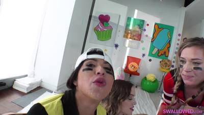 Penelope Woods et Rory Knox se donnent le tour pour sucer un mec. Pendant que l'une suce en sortant sa langue, l'autre lui lèche les couilles ou le cul