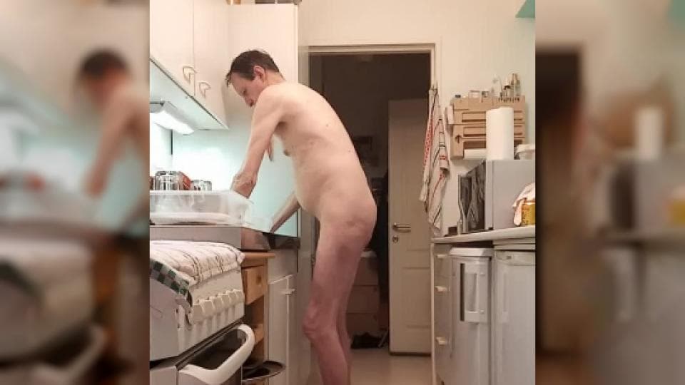 Je suis un exhibitionniste et j'adore me balader à poil chez moi. Je partage mon fétiche live et me voici à poil dans ma cuisine lavant ma vaisselle.