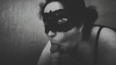Une mature en masque se fait filmer en suçant son mec, elle passe sa langue sur le gland et le branle