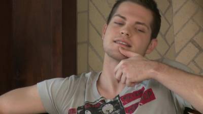 Le gaymec Aaron Caine se branle et ne s'arrêtera pas tant qu'il ne se sera pas recouvert de son sperme.