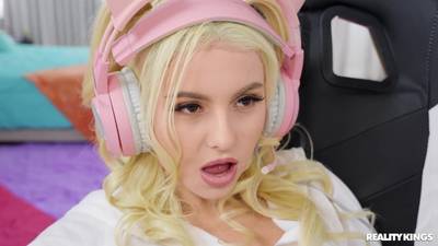 La jolie blonde se fait lécher par son copain alors qu'elle joue à son jeu, elle va ensuite le sucer et mettre en pause sa game.