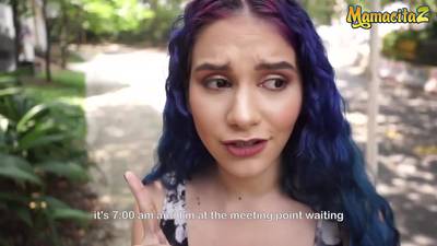 Cette belle sirene aux cheveux bleus adore jouir. Dans la rue, elle drague ce mec et lui taille une pipe comme une reine. Il la retourne et la pistonne