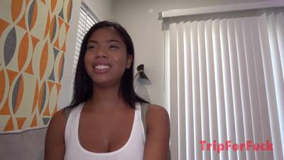 La jolie métisse va faire un casting porno bien sympathique, elle dévoile ses beaux seins avant d'avoir droit à un cunnilingus et une bonne baise.