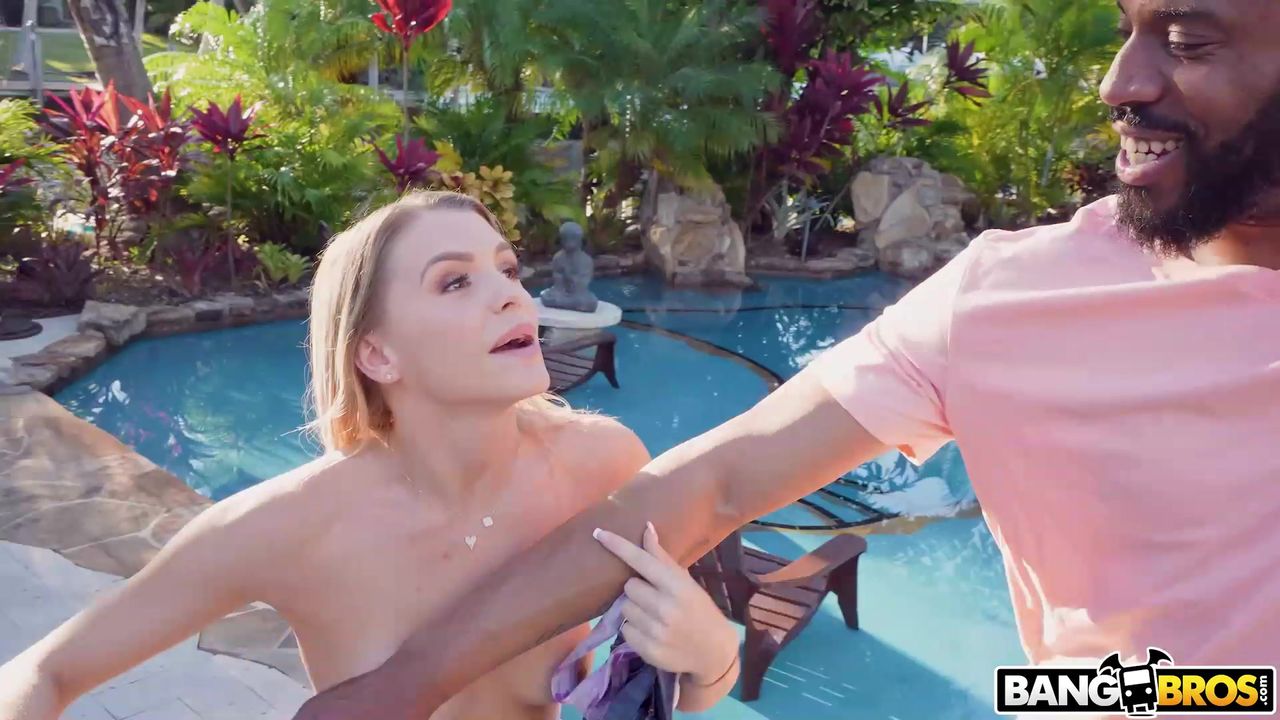 Au bord de la piscine, une blonde se masturbe avec son gode mais c’est sans compter sans l’arrivée du garçon de piscine qui est bien équipé.