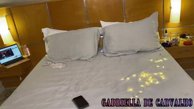 La superbe transsexuelle Gabriella de Carvalho vêtue d'une tenue sexy de Maman Noël en bottes noires, se branlant jusqu'à devenir lâcher son foutre.