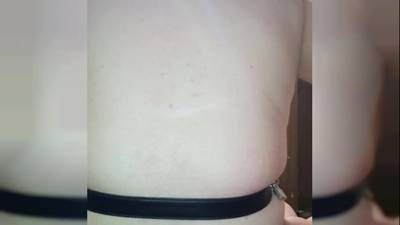 Moi dans une ceinture de chasteté prenant mon jouet wuffamute. Cette fois, j'ai pu prendre la plus grande partie du nœud, mais il n'est pas resté en moi