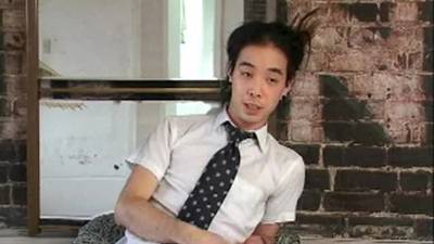 Un jeune asiatique mince se déshabille devant la caméra, enlève son costume et s'accorde un moment de détente en se branlant jusqu'à ce qu'il éjacule