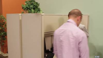 Deux collègues de bureau restent après le travail pour baiser en position debout et en position assise. Mike De Marko et Rod Daily dans une scène torride !