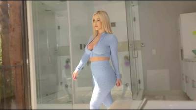 Une blonde coquine était toute mouillée pour le livreur brun, elle lui a donc apporté un verre d'eau toute nue et il n'a pas perdu de temps