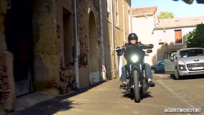 Pendant que cette française fait bronzette, son mec motard arrive. Elle baise avec lui sur la moto, avant de passer au lit