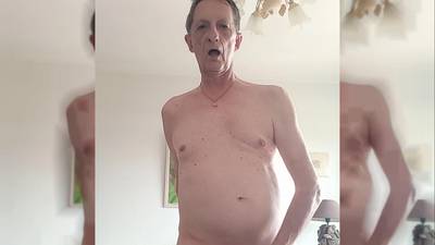 Un vieux type seul dans la maison, entièrement nu et montrant sa grosse bite, se masturbant tout en dansant jusqu'à ce qu'il éjacule sur la table.