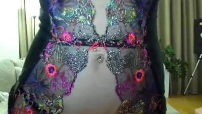 La blonde aux gros seins est habillée de lingerie sexy et de bas noirs et ne fait même pas attention à la caméra mais se masturbe passionnément !
