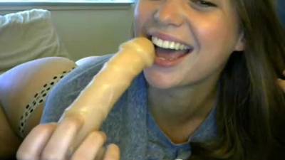 Cette jeune fille innocente suce son gode préféré après s'être masturbée avec. Elle a un visage parfait et mignon !