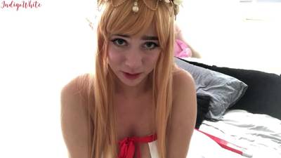 Cette petite elfette aux gros seins se réveille avec une envie de sexe. Elle se masturbe beaucoup et baise un bon gode en se faisant jouir de plaisir