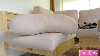 Sur le canapé du salon, il se sent excité et met sa grosse bite blanche dans tous ses trous jusqu'à ce qu'il déverse une charge crémeuse dans son doux cul