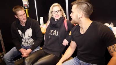 Pendant la pause, les trois collègues discutent un peu. À un moment, la conversation chauffe et ils décident de baiser. Deux doses de sperme sur ses seins.
