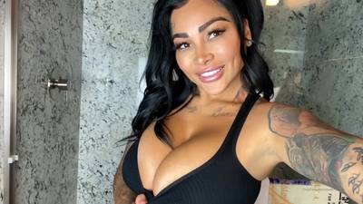 La belle Latina, brune aux gros seins et au gros cul a un corps couvert de beaux tatouages désireux de montrer ce trésor et de se masturber en douceur.
