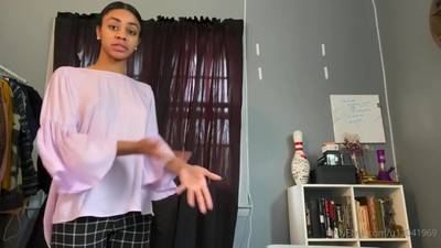 Cette jeune fille noire se masturbe seule, en tenue d'étudiante et en écartant les jambes pour ne rien laisser passer.