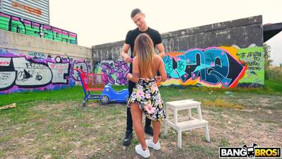 Regarde comme il se régale en baisant une naine sexy en plein air