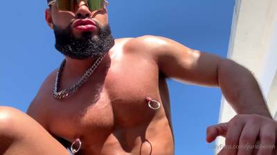 Yuri Oberon, grosse bite, baise un mec avec une barbe et un corps d'ours chaud, bareback à l'extérieur et dans le lit.