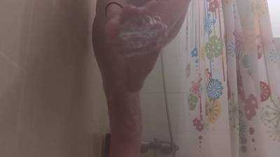 Fanny 18 ans n'a pas pue résister à des envies sexuelles sous la douche, elle se branle et gicle en montrant ses pieds et sa chatte fraîchement épilée